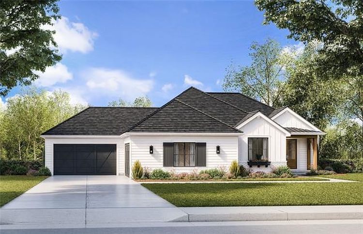 The Modern Farmhouse Style Reverse 1.5 Story by Gianni Homes will catch your eye the minute you pull up. White exterior paint and black accents, stained cedar columns and door is a rising star from the minute you open the front door and see the unmatched view at the covered porch. Beautiful Beams and hardwood floors in the main living space add a warm comfortable feeling enhanced by a stone to ceiling fireplace. Double sliding doors to the covered deck open to bring the outdoors in. The kitchen is another feature you will fall in love with....over-sized island, plenty of cabinets and the chef's dream pantry! The owner suite is at the back of the house featuring 10' ft ceiling, heavenly closet plus a Freestanding tub and walk in shower. The laundry room is in between the Master closet and mud room. The mud room is off the garage with a built in bench under the coat hooks. The 2nd bedroom and/or flex room is at the front of the house. 4 car L-shaped garage is adjacent to the front porch and the other is front loading. The lower level walkout offers additional Bedrooms, a Family Room, Wet Bar and Second Laundry. Luxurious yet, casual family living is found in this home. Plumbing rough in 3/6. You can still make selections!! Completion is set for August 2022.