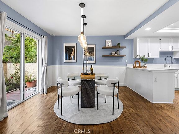 Welcome to this beautifully upgraded 2-bedroom, 2.5-bathroom condo ideally situated in a peaceful corner spot with no neighbors above or below. Nestled in a quiet and well-maintained community in the heart of Lake Forest, this home features dual master suites, an open-concept living area with a charming fireplace, and a bright dining space adjacent to the kitchen. This desirable corner end-unit enjoys exceptional privacy with no direct neighbor behind, and a lovely back patio facing a wide, lush HOA greenbelt, creating a serene and open outdoor living space. This meticulously maintained home has been upgraded over the years with brand-new flooring upstairs (2025), updated laminate flooring and baseboards downstairs (2022), and an upgraded kitchen with refreshed countertops (2022). Additional improvements include recessed LED lighting throughout, a new HVAC system installed in 11/2022, and a full home repipe completed in 12/2021. The upgraded kitchen features beautiful quartz countertops and stainless steel appliances, and is seamlessly open to the dining room. A large sliding glass door in the dining area provides direct access to the private patio, creating a perfect indoor-outdoor flow for relaxing or entertaining. Both upstairs bedrooms are spacious, bright, and offer private ensuite bathrooms, providing enhanced convenience and privacy. The laundry closet is also conveniently located on the second floor. The detached two-car garage is just steps away, accessed via a quiet and private walkway, and the home also includes an additional parking permit for convenient guest or extra vehicle parking. HOA replaced the roof in 2022 and the HOA fee includes water and trash services. Community amenities include a pool and spa, and the location offers easy access to parks, shopping, top-rated schools, and freeways. With its ideal floor plan, peaceful greenbelt-facing setting, and thoughtful upgrades, this home offers comfort, privacy, and value — a fantastic opportunity not to be missed for both first-time buyers and investors alike.