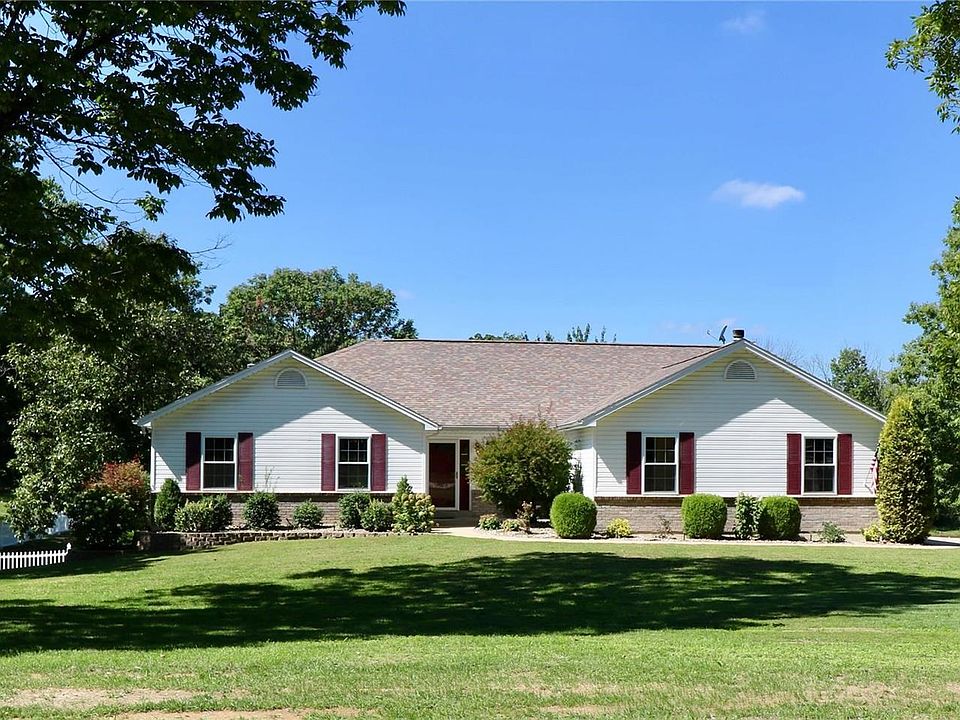 This amazing custom built atrium ranch is ideal country living located minutes from town. The home features 1.64 acre lot with Lake Frontage in a private subdivision with paved roads. Entering the home, it is difficult to miss the wall of windows overlooking the large deck, back yard and lake. The spacious master suite feature a walk in closet and bathroom with double sinks, tub and separate shower. The main level also features two bedrooms and full bath. The open kitchen and dining area boast granite tile flooring, granite counter tops and backsplash. The hearth room feature a cozy wood burning fireplace. The completely finished lower level features two additional bedrooms, Living area with bar and a bonus room/man cave. Nearly 3400sq ft of living space has been updated with a completely new septic system in 2018 as well as new water heater, newer sump pump with backup system. Fenced garden with shed/chicken coop. You will love coming home to the peaceful setting of this forever home.