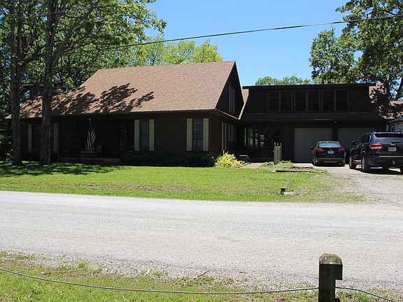 Looking for the trifecta of large lake home, partial lake view and a slip in a covered boat dock?? You have to see this unique home at Pomme de Terre Lake! On the lower level we have an open concept and a brick fireplace in the living room! The dining room is off the galley kitchen with custom oak cabinets and all the appliances that stay with the home! Upstairs is a second BR, that could sleep 8-10 people comfortably! The bathroom has a walk in shower and you can walk right out on the upper deck and sunbathe! The master bedroom and bath are on the first level as well as the utility room. The master bath boasts a jacuzzi tub and a walk-in shower. Off the kitchen is a breezeway/sunroom between the attached finished 2 car garage with an additional garage/shop added on to it! There is also an attached carport large enough for your pontoon. You will want to spend all your time on the rear covered deck and/or the huge bonus room that was built over the attached garage. That is when your not down at your covered dock that has your slip, large enough for a pontoon. The home's exterior and some interior is rough cedar and also had oak custom cabinets in the kitchen and knotty car siding trim. It is all electric with a heat pump for heating and cooling. The wood fireplace is also a great way to heat this very energy efficient home. This is a perfect getaway for a large family or just anyone wanting to retire and not have to do a thing except enjoy lake living!!