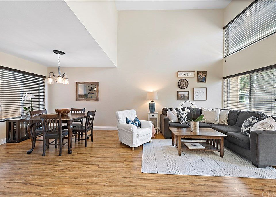 Your timing could not have been better! Call now to view this gorgeous model perfect 2 bedroom, 2 bath home which features cathedral ceilings, open floor plan with lots of natural light. Recently painted throughout with a neutral color palette, newly installed light oak laminate wood flooring, neutral carpet on stairs and bedrooms as well as replaced all window and slider with energy efficient white vinyl. The kitchen cabinets are in the process of being painted bright white to blend nicely with granite countertop, travertine backsplash and stainless steel appliances. All appliances including washer & dryer are included. The marble fireplace is centered in the great room and home office/den space.Two large private decks, one off the Family room for entertaining and the other off the master bedroom. The 2nd bedroom is on the next level with ensuite bathroom. A wonderful home for those looking to be in a great location, easy freeway access, walking distance to shopping, hiking and biking trails as well as privileges to the Lake Mission Viejo. Community pool, spa, playground, picnic tables and grass areas in the community at a low monthly fee. Low tax rate and no Mello Roos. With interest rates below 3% your clients will be ecstatic to own their own home and save money!!Sellers found a replacement property in the process of preparing for market and will consider all offers!! Call today and be the first to seize the moment!