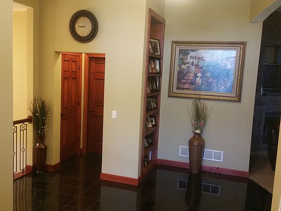 Beautiful custom home in a serene setting! This superb home shows great attention to detail throughout and sits on 5 acres. The open floor plan with high ceilings and marble tile flooring is breathtaking! The first floor offers 3 large bedrooms, two bathrooms, a formal dining area, generous cabinet space, elevated ceilings, incredible laundry room, and a huge master bedroom with decked out master bath. The finished lower level has a 2nd kitchen/wet bar, two bedrooms, a large storage room, open family room, and a large bathroom offering a walk in shower. Additional features include: Geothermal HVAC, 2x6 construction, custom countertops and flooring through. Outside there is a HUGE 26 x 30 garage/shop and room for Horses which are allowed in this HOA! Very easy to show and flexible possession is available, please call an agent today for a private tour.