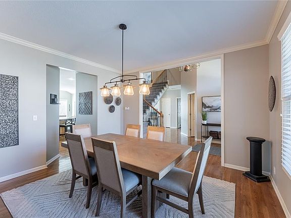 Special features include a custom mud room, an oversize custom laundry room, and custom shelving throughout. Finished walkout basement offers a 5th bedroom and full bath, a built in desk and a large rec room. Every detail has been taken care of in this fantastic home. Brand new roof to be installed soon due to a recent storm in the area. Award winning schools and amazing neighborhood with great walking trials and amenities.