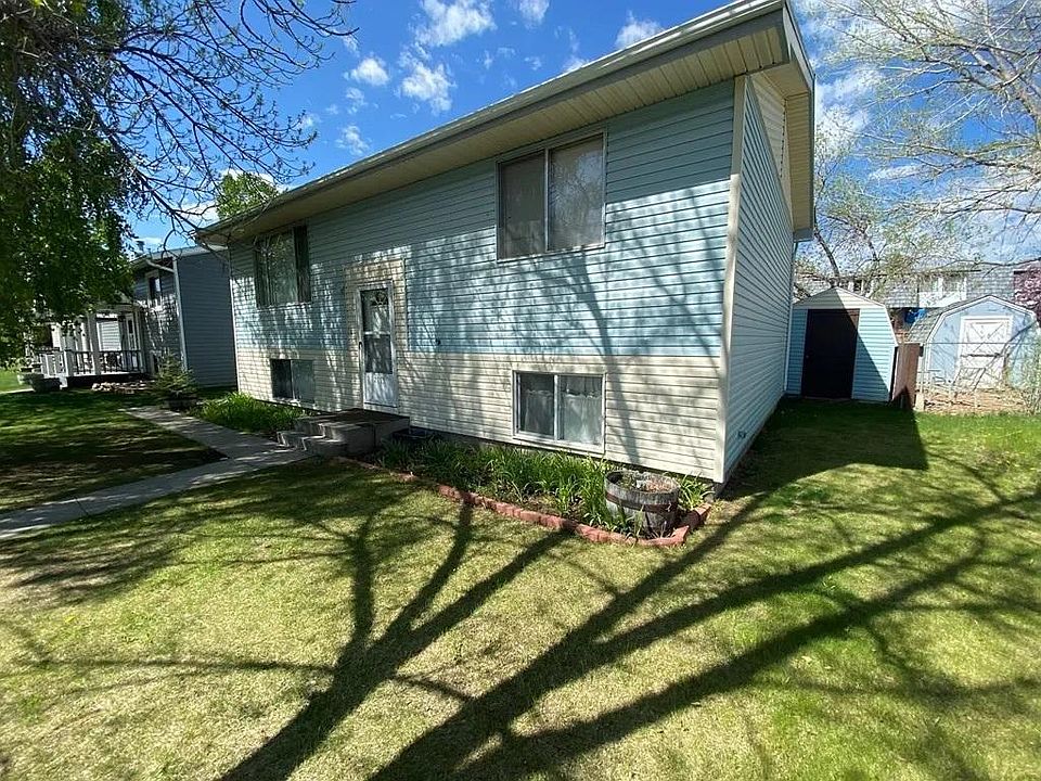 Split level home, has an 8x12 shed and a 12x20 work shop. Also a 8x10 shed for all the gardening tools. All has vinyl siding. Has underground sprinklers, and many mature trees