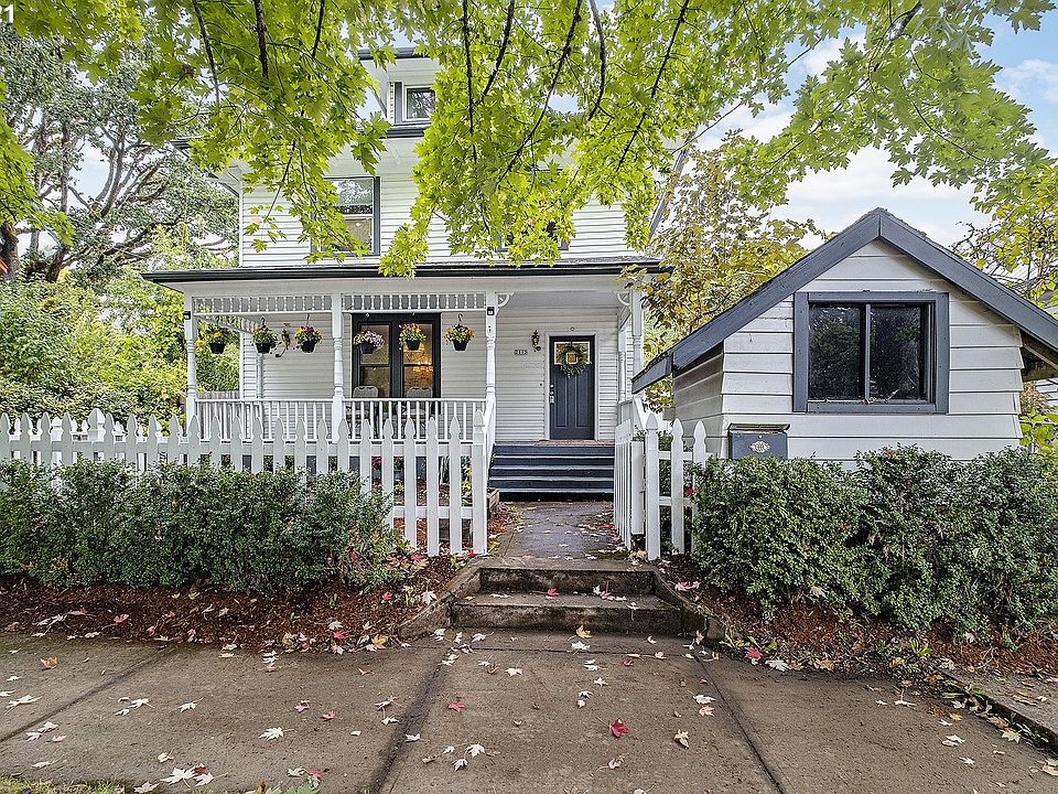 Adorable Farmhouse with so much character and unique features. This home is truly a gem in the old town of Forest Grove. It has a wonderful covered front porch that would be fabulous to sit on a swing and relax. Each room with its original wood floors has a wonderful flow from the living room to dining and den/music room to the most adorable kitchen before settling in the covered back porch.