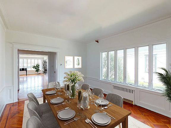 Bask in the delight of the prewar parlor floor featuring an enormous living and dining space perfect for entertaining family and friends for celebrations of all kinds, from birthday parties to graduations and the holidays. Its open floor plan can comfortably accommodate a variety of configurations, including a dining table with seating for 10-12 guests. And your guests will admire the original woodwork, plaster molding, original parquet flooring throughout, wainscoting, and, best of all, the restored wood-burning fireplace.