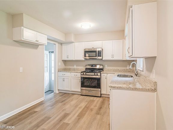 Great rural feel to this large city lot! Nicely remodeled 3 BR Ranch, with new Shaker Style White Kitchen, Granite counter tops, and Stainless Steel appliances! Updated Bathroom too! Fresh neutral paint and New LVP Vinyl Flooring throughout! Newer Roof, Furnace, Central Air, and Hot water tank. Updated Electrical. 2 Car Attached Garage. Fenced yard! Basement is ready for you to finish! Spacious rooms and a small enclosed side/ back porch area and patio. This is a Fannie Mae HomePath Property.