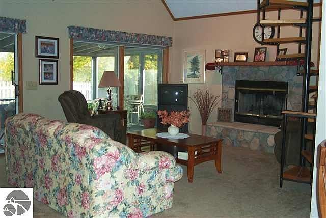 UP THE LAZY RIVER! World class trout fishing, lots of wild turkeys & deer, private river frontage plus a private pond. Quiet, pristine location only 15 minutes from Traverse City. Adorable 3 BR, 2.5 BA chalet with 130 of private Boardman River frontage. The beamed living room features a vaulted ceiling that soars to the loft and a beautiful stone fireplace. The very efficient kitchen has lots of countertops & a portable island. Master BR has views of the river; the loft BR has a private balcony. The spacious screen porch will be a cool, shady retreat on hot summer afternoons plus there is a large deck overlooking the private pond & river. Oversized one-car garage, storage shed & more!