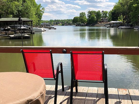 Waterfront Home! Full renovation. Open living, stunning views of Lake Wylie, private beach-an anomaly for Tega Cay. Best schools! Updates: Cement board Siding, windows, new Air Conditioner. Teak hardwood floors on main, stone surround fireplace, new decks, standing seam metal roof over 2-car porte cochere, sunporch, deep water dock, boat lift, walk-out tiled in-law/ensuite with bedroom, full bath, kitchen, professional appliances including 48” Platinum Bluestar range with double oven, interchangeable griddle and charbroiler, two 27” Sub-Zero Chef Refrigerated Drawers in island, built in stainless Kitchenaid Refrigerator/Freezer and Ice Maker, Bosch dishwasher, stainless Silhouette Professional Beverage Centre, Dacor microwave, custom cabinetry with soft close drawers, & a spacious pantry, kitchen pass-through window to year round sunporch. This home is in Turn-Key condition, perfect for entertaining! Come make your home on this perfect culdesac location.