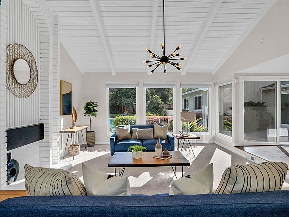 Incredible single story home nestled on a cul-de-sac offering a stunning backyard with a sparkling pool & exquisite garden areas. A spacious front living room boasts soaring plank ceilings framed by a floor to ceiling fireplace, stylish sputnik chandelier that floods with natural light. Paneled glass doors create spectacular sightlines of the backyard & pool as soon as you walk in. The formal dining room enjoys built-in cabinets and large windows. Enjoy a half bath near the entry for convenience. Eat-in kitchen offers sleek granite countertops, white cabinetry, soft-closing drawers, stainless steel appliances including a gas range, breakfast bar seating, dining area & enjoys an open floor plan to the family room. The spacious primary suite enjoys sliding glass doors to the pool, mirrored closets & a spa-like ensuite bath featuring a walk-in shower. Enjoy 3 additional generously sized bedrooms & a hall bath with double sink vanity & shower/tub. The striking backyard is an entertainer's dream boasting a sparkling pool, patio seating, lawn space on one side and on the other an intricately detailed garden, planter beds & storage. Additional features include hardwood floors & owned solar. Minutes to Heather Farms park, shopping, dining & top rated K-12 schools.