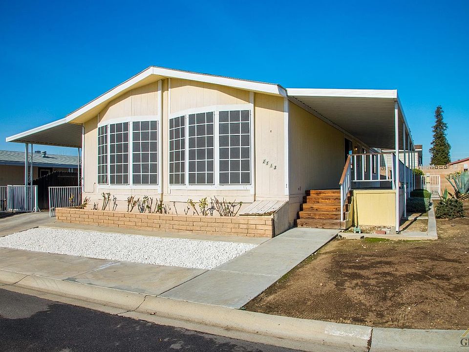 Great Home and Investment. Spacious 1440 sq ft home in small, private,well maintained community of Eastwind Mobile Estates. Own your own lot, and pay only $35.00 per month HOA. Large living room, dinning room and kitchen with Refrigerator and Stove. Indoor service porch with washer and dryer Large master bedroom with spacious On Suite A total of 3 Bedrooms and 2 baths Air Conditioning and Forced Air Heating 3 car covered carport and two storage sheds. Gated yard with lots of privacy and large front deck. Nicely landscaped low maintenance yard with automatic sprinkling system New Grammar and Middle School Close to freeway and shopping Very quiet and safe neighborhood.. For this price .......there is nothing comparable in Bakersfield Priced to sell.....It won't last long!. For a showing call Brian Hicks today @ 661-477-4357.