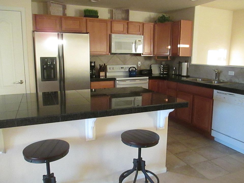 Beautiful, spacious unit, (1433 sq.ft.) 2 bedrooms, 2 full baths, plus office, with great mountain view, open floor plan, gas fireplace, granite counters, attached 2-car tandem garage. Ranch style on 2nd level. All appliances including new washer/dryer. Lots of green area, walking paths, night time street lighting. Close to shopping, golf course, bus access and close to Hiway 66. Trash, water/sewer paid by owner