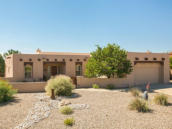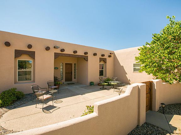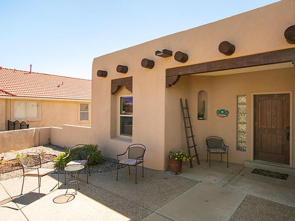 Beautiful custom build home with fantastic views! Nearby parks, Bosque hiking/biking trails. Tall Ceilings will greet you in the Great Room, with East facing windows and views, gas log kiva oven- adjacent balcony with exterior staircase. A high-end chef's kitchen with a Viking Range and oven, another double oven/microwave with a warming drawer, big pantry, lots of cabinets and granite counter tops! Brand new Bosch washer and dryer, new stainless steel dishwasher and refrigerator. The home is abundant with natural lighting. Fantastic Master suite has large walk in closet, balcony access, cove ceiling. Master bath has jetted tub, snail shower, double-sinks. Downstairs teen or in law suite includes 2 large bedrooms, full bath, living room with hardwood floors, wet bar with sink and under counter refrigerator, walkout doors to the patio and outdoor kitchen. Additional hobby room/office and 2 large storage areas. New advanced security system and smoke detectors.
