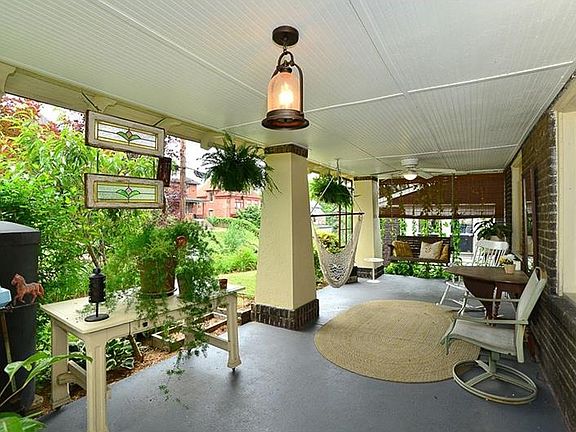 1917 Authentic Prairie style Craftsman home, amazing architectural appeal with hipped 50 yr metal roof, numerous gorgeous quarter sawn bookcases and built-ins throughout, amazing original rich oak paneling in entryway leading to turned staircase with stained glass window in stair landing. Sellers have kept this home true to the architect's intent. Sizable dining room for entertaining with stained glass and built in china cabinets, kitchen with double drainboard vintage Tracy metal sink and built in step back cupboard, complete with vintage range. Tree lined street, amazing 10x24 covered front porch complete with potting table and perfect for a porch swing, edible permaculture--peach tree, blueberries, hundreds of impressive perennials, rain barrel for watering, rear deck from kitchen looks out on usable rear yard leading to 2 car detached garage with storage room above. The basement is clean and complete with front load washer and dryer, with walk up steps to back yard.