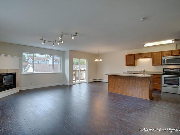 Gorgeous, South Anchorage townhouse, priced to sell. 1,572 sqft with high-end finishes & a 960 sqft unfinished basement plumbed for a kitchen & bathroom. Could be used as a theater room, game room, kids play area or storage. 4 bedrooms w/2 full baths, laundry room, great room with vaulted ceilings. Custom painting, custom lights, custom kitchen, flooring & bathrooms. 5 STAR ENERGY RATING!