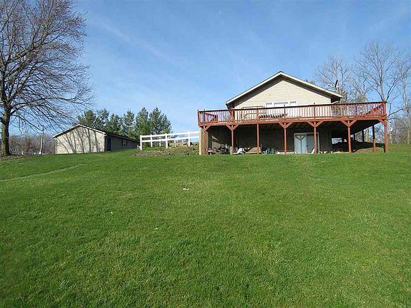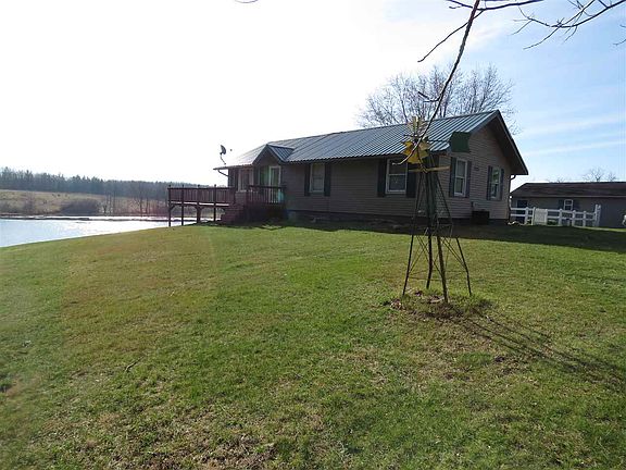 This house has it all! Charming three bedroom house with cathedral ceiling's and lots of natural light. Partially finished walkout basement with a room as a possible fourth bedroom. Metal roof is only two years old. Almost sixteen acres, ten of which are wooded and perfect for hunting. Three acre pond is stocked with crappie and bluegill. Two pole barns and one shed top off this little piece of paradise.