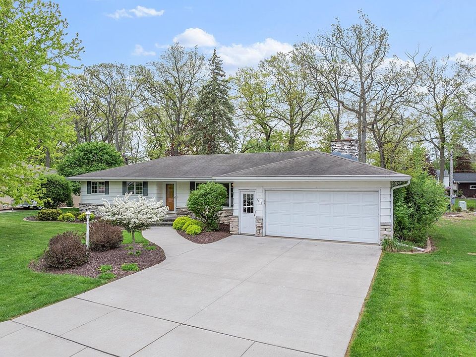 Charming 4BR/1f+2hBA ranch on a quiet closed street features kitchen w/ maple cabinetry, pantry & peninsula seating. LR w/ casement chicago window w/ expanded wall opening to dining room w/ built-in china display. Hall w/ ample built-in storage leads to 3 bedrooms & updated bath skylight. Opposite, a guest-bath is located near fam-room w/ gas FP & sliding door opening to curved patio & nicely landscaped yard w/ curbed edging. Lower level boasts nearly 1000 sqft of finished space composed of a cavernous rec-room, 4th bedroom, office & half-bath w/ partially open ceilings, and handy cedar closet. Laundry facilities & ample clean, dry storage complete LL. Central vacuum, 2-stall attached garage w/ epoxy floor & more!