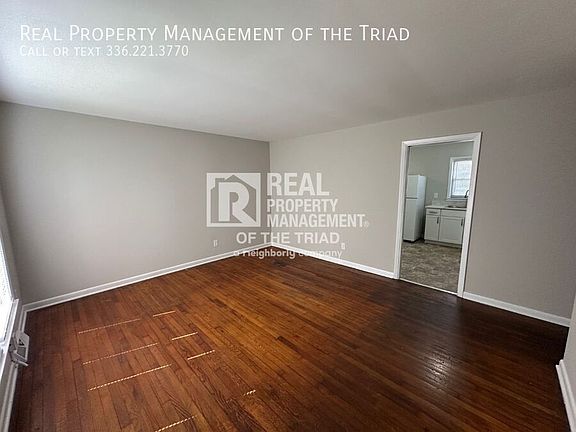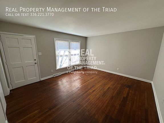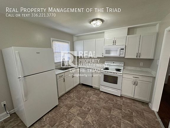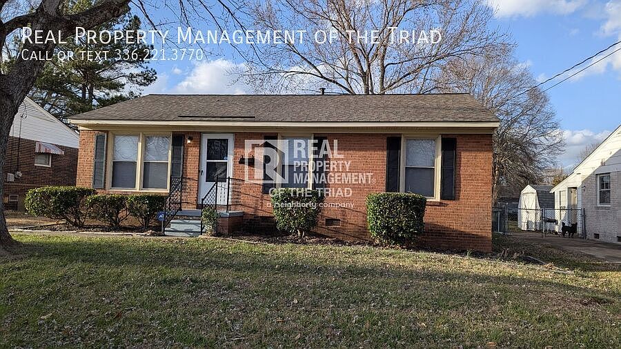 One level brick home with brand new kitchen and bathroom! Ample cabinets and counters with eat-in area. Hardwood floors throughout with new vinyl floor on kitchen and bathroom floors. New appliances including fridge, washer/dryer hookups, and central gas heat, no AC, mini split AC system to be installed by 3/31/2025. Flat yard completely fenced in and gravel driveway. Convenient to all areas of Greensboro and major commuting routes.