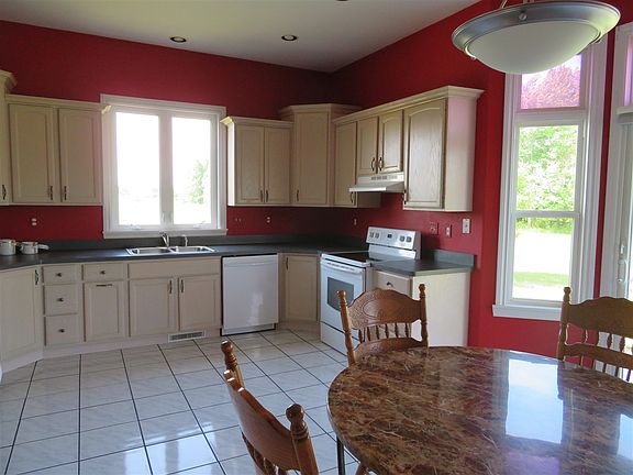 Custom built (2001) 3 to 4 bedroom, 2 bath ranch located on 4 acre country setting. Well-lite open floor plan featuring 10ft ceilings in entry, living room, formal dining and kitchen, bull nose corners and custom trim throughout. Open foyer looks into spacious living room with window view of private back yard. Nice kitchen with ample cabinetry plus added space for breakfast nook and glass sliders leading to 16x18 patio. Large master suite featuring pan ceiling, walk in closet, makeup area and private full bath. 1st floor laundry. Lower level ready to be finished with 9ft ceilings- partitioned and dry walled for future family / rec room (22x24) and possible 4th bedroom (21x11). High efficiency furnace. Central air. Oversized side entry attached finished garage plus extra 32x24 detached garage with workshop. Cozy covered front porch. Pond. Plenty of room for pole barn. Country living but yet just minutes from town and conveniences. Motivated Sellers!!
