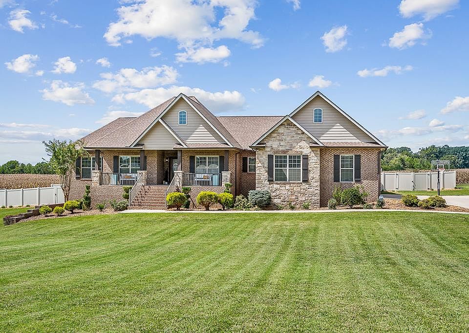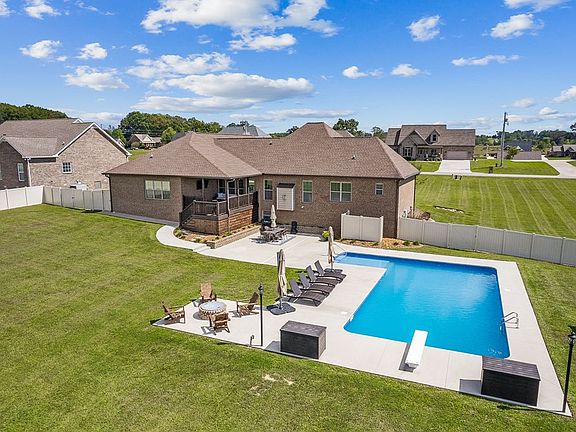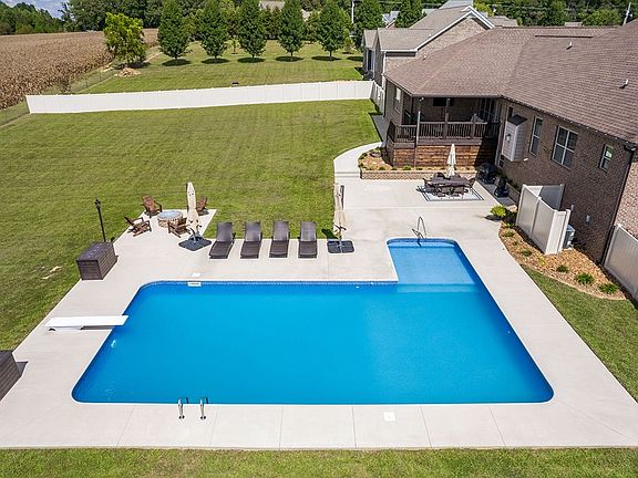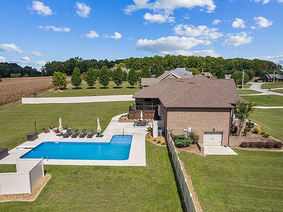 This impressive, custom built residence is the builder's personal home. With 4050 heated/cooled sq. footage, you will find many well-planned highlights throughout. There are exceptional designer touches with 9 and 10' ceilings, attractive mouldings and trey ceilings. The setting provides incredible views of the adjoining 100 plus acre farm with beautiful rolling farm lands from the rear of the home. Floorplan features 5 bedrooms, 4 baths, generous sized kitchen w/ all appliances that overlooks the lg. familyroom w/ gas fireplace. Access to the covered deck is adjacent from these two rooms and the view of the 20x40 inground pool w/ diving board and 10x12 tanning pool is spectacular. A lg. dining area is located just off the kitchen. The full, partially-finished lower level provides a massive play room/exercise area, a safe room and the 5th bedroom/bath. A 10x12 storage room is located off the 3rd garage in this location. An oversized 2-car garage is located on the main level.