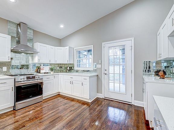- Kitchen Features: Breakfast Bar, Eat-in Kitchen, View to Family Room, Stone Counters, Kitchen Island, Cabinets White