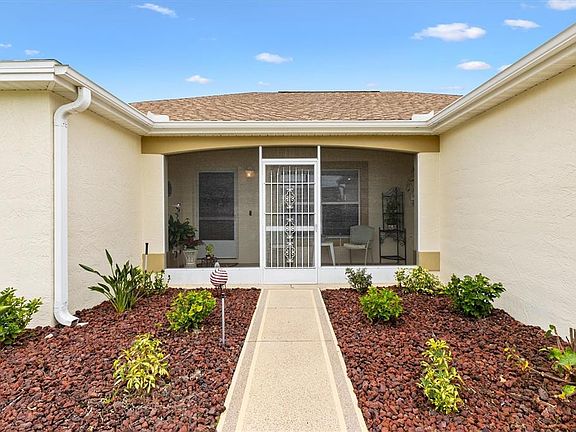 New HVAC just INSTALLED! Charming Catalina III in The Village of Santo Domingo with BOND PAID - Welcome to this well-maintained 3 Bedroom, 2 Bath Block Stucco Catalina III floorplan in the highly desirable Village of Santo Domingo in The Villages, Florida. Offering 1,392 square feet of comfortable living space with a 2-car garage, this home blends curb appeal, convenience, and functionality. From the moment you arrive, you’ll appreciate the inviting exterior featuring a decoratively painted driveway and walkway, along with a screen-enclosed front porch that sets the tone for relaxed Florida living. Inside, the open floor plan flows seamlessly between the kitchen, living, and dining areas. The kitchen boasts an island with seating that overlooks the main living spaces, making it a perfect hub for entertaining or casual meals. The split-bedroom layout ensures privacy, with the guest suite thoughtfully positioned on the opposite side of the home. The primary suite offers a comfortable retreat, while additional bedrooms provide flexibility for guests, an office, or hobbies. With no carpet throughout, this home is easy to maintain. Step into the east-facing enclosed lanai, an ideal spot to enjoy morning coffee or unwind in the evening. A grilling patio just outside extends your outdoor living space. Additional highlights include Bond Paid, Roof replaced in 2020, Offered Turnkey. This home combines charm and practicality in a prime location, close to golf, recreation, and Spanish Springs Town Square. Enjoy The Villages, FL, lifestyle with abundant amenities for you to attend golfing, shopping, dining, and enjoy many entertainment choices, club meetings, medical services, and more, all accessible by a golf cart.