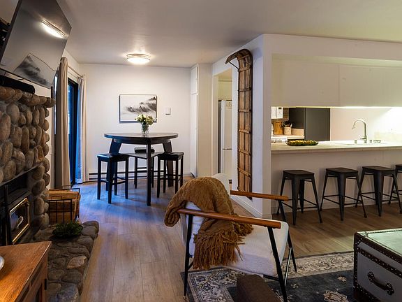 Cozy one bedroom with alcove twin bunks and sofa. Completely stocked kitchen with everything you need and unbeatable location, walkable to VONS grocery, ski/bike rentals, restaurants, cinema and more. Perfect for seasonal/contract workers. Easy access to the mountain and right on the Green line free shuttle line. Great complex amenties including Jacuzzi, pool, sauna, tennis courts, BBQs a game room and more!! Our condo is a spacious ground level one bedroom unit with a comfy queen bed in the bedroom, twin beds in a bunk alcove and a sofa sleeper in the living room. There is ample parking in the front and a convenient ski locker located next to the front door for all of your mountain gear. The kitchen is fully stocked with all sizes of pots and pans, a blender, mixer, crockpot, electric kettle, coffee maker and much much more. You'll have everything you need for an extended stay. The dining room table seats 6 and is the perfect table for a nice dinner or game night. There is one full bathroom and an additional vanity and sink in the bedroom. With a cozy, warm mountain theme you will feel right at home in our Mammoth vacation home. Available April 15th- Nov 15th 1-6 month lease or Month to available Month to month lease available starting mid August until November. Owner to pay all utilities (water, electric, internet, cable TV) bi-monthly cleanings included in rent