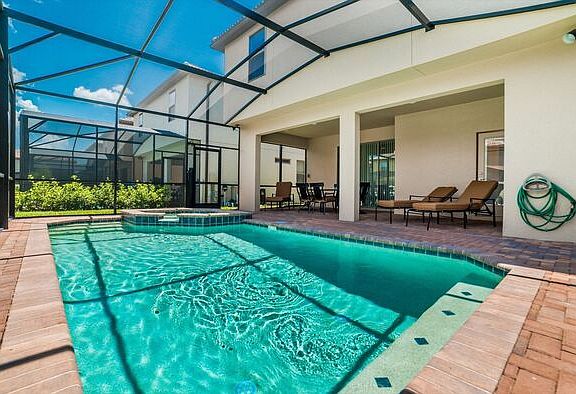 This property is a corporate rental. Please note that the monthly rental price for this property is dynamic and subject to seasonal adjustments. For an accurate quote, provide us with your intended move-in and move-out dates. Windsor at Westside Resort Vacation Home - includes resort clubhouse amenity access! Our 7-bedroom, 5 1/2-bathroom, private pool + spa vacation home is a great option for families wanting a home base to enjoy the best of all that Central Florida has to offer. * Windsor at Westside Resort Private Pool+Spa Home Sleeps up to 15 * 7 bedrooms/ 5 1/2 bathrooms * Private Pool and Spa - faces East * Pool Table, Air Hockey and more in Star Wars Themed Game Room * 6 miles to Disney World property * Fully equipped Kitchen with dining for 8 at the dining room table. * Themed Bedrooms include Star Wars and Mickey Mouse * High Chair * Outdoor Dining Seats 6 * 2 Sun Loungers BEDROOMS 1st Floor (DOWNSTAIRS) Bedroom 1: One King Bedroom (Attached Bathroom) 42\" TV BEDROOMS 2nd Floor (UPSTAIRS) Bedroom 2: One King Bedroom (Attached Bathroom) 42\" TV Bedroom 3: Two Twins Bedroom (Attached Bathroom) 32\" TV Bedroom 4: One King Bedroom 32\" TV Bedroom 5: One King Bedroom 32\" TV Bedroom 6: Two Twin Bedroom 32\" TV Bedroom 7: One Twin and One Double Bedroom 32\" TV Star Wars Theme Pool/Spa Heater Charges and Information: There is an additional optional charge of $30 per day plus tax to heat the pool. The Spa will not heat up unless the heater is paid for. Please note that our pools are serviced on a weekly basis. Resort Parking Rules: The resort allows a maximum of 3 cars. Do not block the sidewalk or park on the street or the resort will fine you 3rd car needs to be parked parallel to the driveway to not block the sidewalk Windsor at Westside Resort Amenity Access Included with Rental: * Resort-style zero-entry pool * Interactive Splash Park with water slide for kids * Fire Pit * Lazy River * Poolside Tiki bar and Restaurant * Fitness center * Arcade * Sand volleyball * Playground * Basketball and Tennis courts Distances to Shopping & Attractions: - Walt Disney World 6 miles - Universal Studios 20 miles - SeaWorld 16 miles - Orlando Airport 29 miles - Atlantic Coast Beaches 83 miles - Gulf Coast Beaches 88 miles - Publix Supermarket 3 miles - Dining 1.5 miles Why Choose this Rental? * Professionally managed to serve all your needs * Management company has over 26 years of experience hosting well over 200,000 families * Go straight to your rental with online email check-in * 24/7 on-call maintenance * No Resort Fees * Free On-Site Parking * Smoke-free and pet-free for your comfort * Towels and linens are provided * Complimentary WiFi * Additional Rental items Available (e.g., 3 & 4 burner BBQs, cribs, pack-n-plays, strollers, high chairs, etc.) Starter welcome packet supplies: - 2 rolls toilet paper per bathroom - 2 round hotel-size bar soap per bathroom - 1 hotel-size shampoo/conditioner per full bathroom - 1 roll paper towel - 1 packet dishwasher detergent - 2 trash bags size-13-gallon - 1 small box laundry detergent (enough for one load) - Garbage can liners in each bedroom/bathroom small garbage cans Any supplies beyond this are up to the guest to replenish, we do not restock these items. No salt/pepper or cleaning supplies are stocked due to safety issues. This is an industry-standard practice. FOR GUESTS WHO BOOK 30 NIGHTS OR LONGER STAYS: (this does not apply if you are staying less than 30 nights) We will collect a $1,500 deposit. Balance is due 60 days prior to arrival If canceled 90 days or more before arrival, we keep with us $250.00. $1,250.00 will be refunded. If canceled between 61 and 89 days prior to arrival, we keep with us the $1,500.00 deposit. No cancellation or modification 60 days or less prior to arrival. Contact us to schedule a showing.