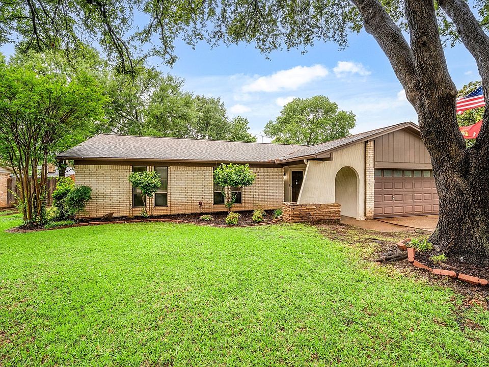 Charming one story home in the coveted Chisolm Park Estates, featuring 3 bedrooms, 2 bathrooms, and a 2 car garage. Nestled on an oversized, beautifully maintained lot, this inviting 3-bedroom, 2-bathroom home offers both comfort and character in a prime location. Step inside to discover soaring vaulted ceilings, a spacious dining room, wood floors, and a warm open-concept living space centered around a gas log fireplace, perfect for relaxing evenings at home. The kitchen boasts classic white cabinetry, a built in oven and an attached breakfast room with a cozy bay window. Out back, enjoy peaceful mornings or entertaining evenings on the covered patio and extended deck, which overlook serene and private landscape, a perfect setting for outdoor dining, gardening, or simply unwinding. Additionally, this home features a storage shed for extra convenience, along with a sump pump for added peace of mind. The wood floors, carpet in the Primary bedroom and baseboards were replaced in 2019. Situated in a highly desirable neighborhood, just minutes from DFW Airport and surrounded by top-tier dining, shopping, and entertainment.