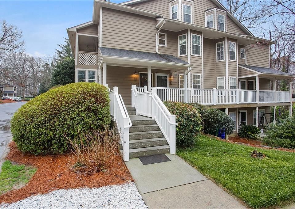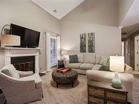 Beautifully renovated end-unit condo in sought after location! Home offers open concept with soaring vaulted ceiling & gas log fireplace in the family room. The gorgeous and updated kitchen has new cabinets, granite countertops, stainless steel appliances, a full pantry and beautiful bay window. The master suite offers spacious, walk in closet and updated bathroom with new vanity, floor to ceiling tile shower. Both secondary bathrooms have been completely renovated with new cabinetry and marble countertops. Home has split floor plan with flexibility, upstairs bed and bath offers private suite for guests or a roommate. Enjoy your own private porch with extra storage space. Newer HVAC, windows, water heater and roof. Welcome home to this quiet, well-maintained community with beautiful mature landscaping, pool and grill area. This fantastic location is walking distance to Brook Run Park and minutes to restaurants, shopping, 285, 85 & 400. HOA fee includes water. Community only allows owner occupants.