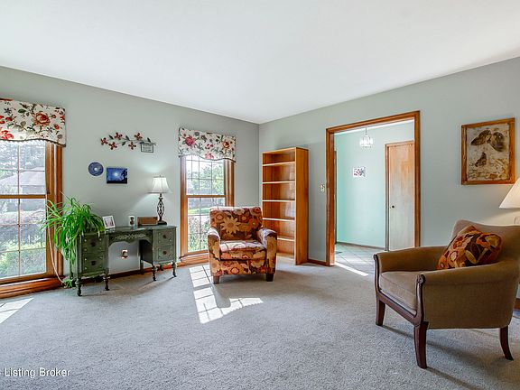 Brick Ranch located in the convenient Jeffersontown location of Bluegrass Estates! Home features a Living Room, Dining Room plus a Family Room off the Kitchen with a gas Fireplace. The eat-in kitchen has lots of natural light and appliances to remain. The Primary Bedroom has its own Primary bath plus their are two additional bedrooms and a full bath. The lower level is partially finished with a family room, office (currently used as a bedroom), bar, laundry area and plenty of storage. The patio overlooks the fenced back yard with plenty of space to entertain or for the kids to play.