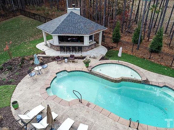 Remarkable 3+acre estate backing to lake wheeler. New 400sqft pool house with outdoor kitchen, stone wood burning fireplace, outdoor shower, and granite bar. Designer Uplighting and extensive landscaping around new fiberglass custom pool. Inside the home you'll find wood beams, coffered ceilings, 8' doorways, commercial grade appliances, site finished hardwoods, and jaw dropping details. 1st floor master leads to serene screened porch. Priced below appraised value. Unique opportunity in great area!