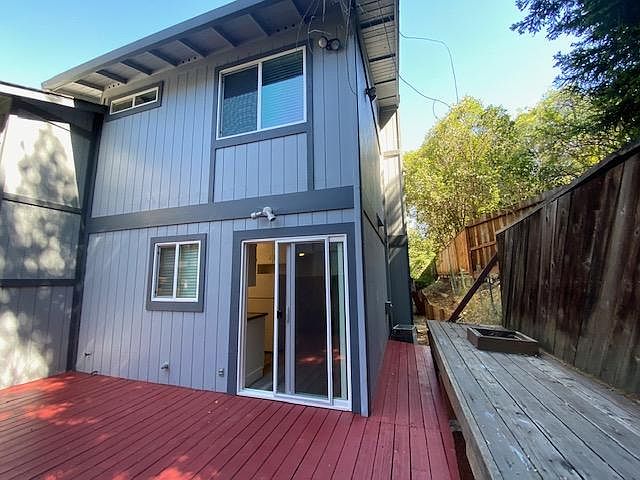 Two level townhouse-shares wall with tenant on the side but no one above or below. Laminate flooring throughout, dual pane windows for energy efficiency, in unit washer/dryer. Chimney. Full bath upstairs and half bath downstairs. New deck ideal for entertainment. A lot of privacy. Newer washer/dryer. Recently remodeled bath. Carport parking and one additional space. Easy access to freeway, downtown, and Bart. Small pet ok Tenant responsible for all utilities.