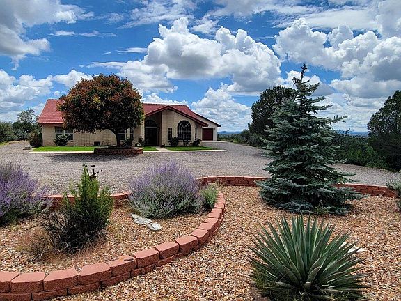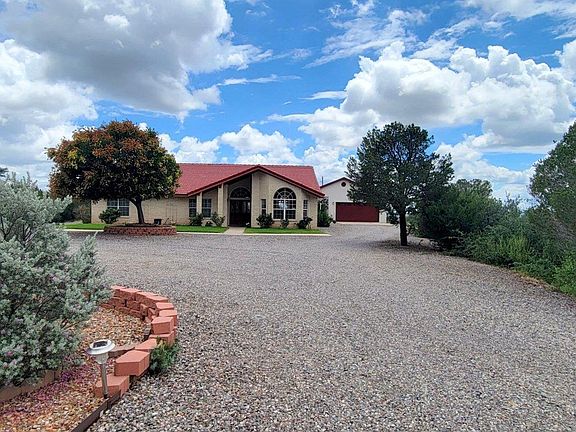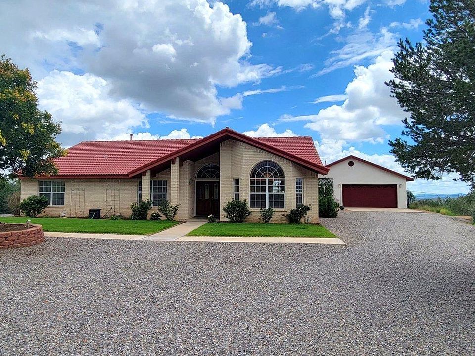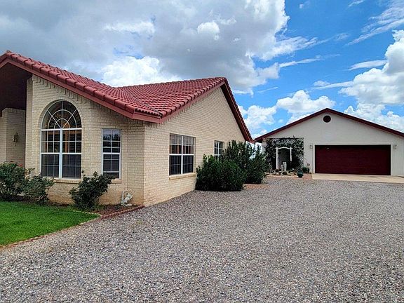 Mountain views surround this graceful, 4 bedroom, 2 bath home with a large 2 car garage. An elegant entry with double doors leads to 2 large living spaces. High ceilings, large picture windows and a fireplace and wet bar in the den create the perfect entertaining space. The kitchen has custom wood cabinets and a breakfast area along with an adjoining formal dining room. The spacious primary suite features a walk-in closet, walk-in shower, double sinks and a soaking tub. Glass bricks bring in the natural light. Multiple outdoor spaces include mature plantings. A workshop and separate storage area are included with the garage. Country living so close to town!