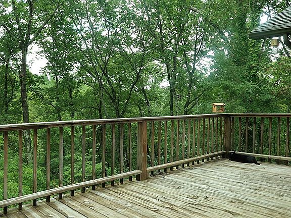 2478 sq. ft., 3 bedroom, 3 bath home on a peaceful cul de sac in the Fairview subdivision with community water and dock access to Fairview Harbor. It sits on 1.73 acres. The property is completely wooded, providing privacy and minimal yard maintenance. Ramp entrance for easy access. There are 2 master suites and a separate den/office. Skylights and a wall of sliding glass doors allow the natural light to flow into the main living area, which also has a stone and brick accent wall, a new wood stove, knotty pine walls, and a deck overlooking the woods. Hardwood floors in the large living room, dining room, den/office, and two bedrooms. Bonus room may be used as a game room or TV room. Kitchen has been recently updated with new cabinetry, stainless steel appliances, and a Corian countertop. Laundry room has new cabinetry and sink. Master bath has new vanity and a Corian countertop. New separate heat/air unit in the larger master suite. Two-car attached garage with wood paneling and lots of shelf space for storage.