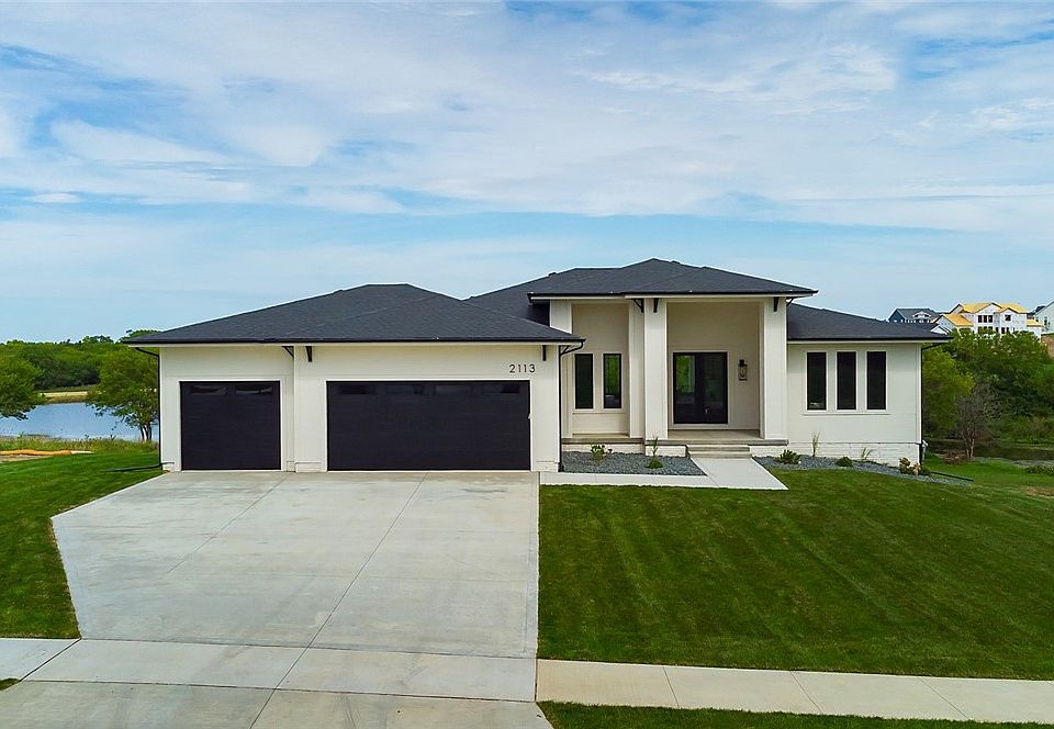 Executive, one-of-a-kind ranch situated on 3/4 acre lot backing to a gorgeous pond. This unique custom built by Orton Homes is an absolute show stopper. Incredible craftsmanship and made-to-order finishes adorn this home at every turn. Pulling up, immediately fall in love with the large, covered front porch and grandiose elevation with Black Pella Impervia windows set against white stucco. Stepping inside, you will be awe inspired by the open & airy main living area with 9' ceilings. The coffered ceiling tray in living room with built-in cabinets, floor to ceiling stone fireplace is sure to impress. But the show just started! Check out the chef's kitchen! Wall oven with gas range and pot filler. A Butlers pantry is located right off the kitchen, located next to a large laundry room. The Master suite is more like a spa. Large walk-in tile shower and soaker tub with floor mounted faucet is what magazine spreads are made of. Directly off the bath is a walk-in closet bigger than most bedrooms. Finishing off the main level is an executive office with with built-in bookshelves and another bedroom with private full bath. Downstairs are two more bedrooms, a full bath and an amazing, spacious, open area for entertaining. A full two tiered bar is perfect for entreating on game day or during movie night. Lastly, enjoy the beautiful view on the covered composite deck or below on the large patio. 100% Custom! Special Promotion receive $10,000 on this new home. You choose how to use it!