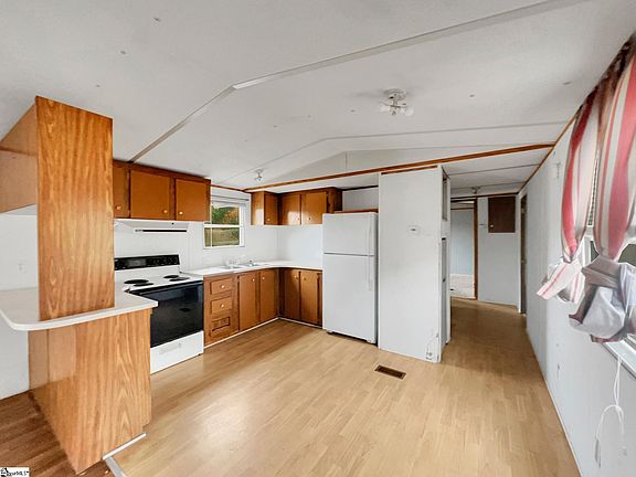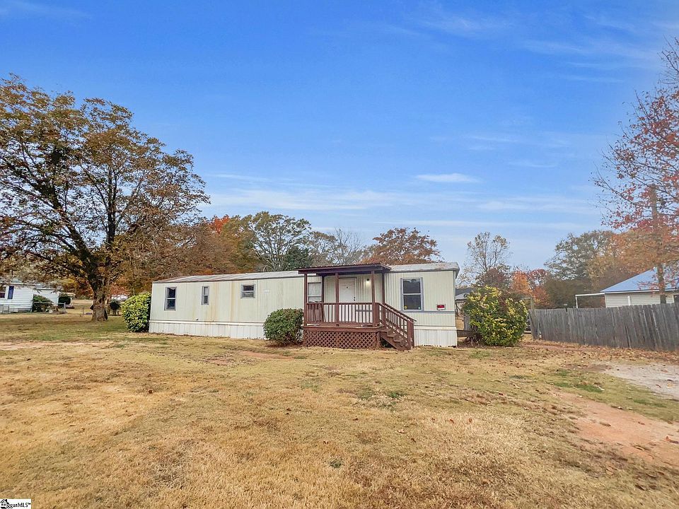 Great opportunity to own a home under 100k. This 2 bedroom 1 bathroom mobile home sits on a nice level lot in a highly desirable location. Open floorplan is great for family dinners and movie night. The 20x12 metal storage building is perfect for a workshop and extra storage. Highly rated schools, shopping and dining nearby. Minutes from I85 so easy access to Greenville, Anderson and Easley. Home sold AS IS and needs a little TLC. Will not qualify for conventional financing.