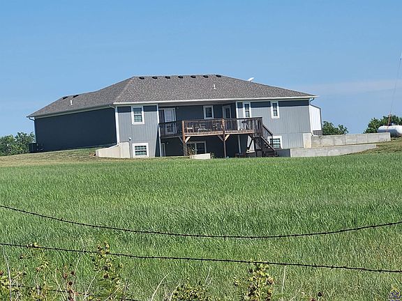 Don’t let the Reading address fool you-This modern country property is conveniently located just off I-35, at the Neosho Rapids exit, offering easy access to everywhere you need to be. A mere 11-minute drive to ESU and only 25 minutes to Wolf Creek. Step into this beautifully constructed home, built in 2019 and upgraded with a new roof, A/C, and contemporary fixtures in 2023. Modern comfort and style throughout this open-concept design seamlessly integrate the family, kitchen, and dining areas, extending to the inviting deck that expands your living space. Enjoy picturesque sunsets as they dance across your very own pond, creating a serene way to let go of the day's stresses. And for those who love to grill and entertain, the covered patio accessible from the basement Great Room provides the perfect spot to host gatherings. A standout feature of this property is the fully insulated 30x40 outbuilding, complete with electric, offering endless possibilities for workshops, hobbies, or additional storage. With 4 bedrooms and 3 bathrooms, this home provides ample space for your family's comfort, and there are even 2 additional bedrooms ready for finishing. Don't miss this unique opportunity to own 8 acres, conveniently located just off a paved road. Experience the joys of country living without sacrificing accessibility. This property is a true gem waiting for the perfect owner.