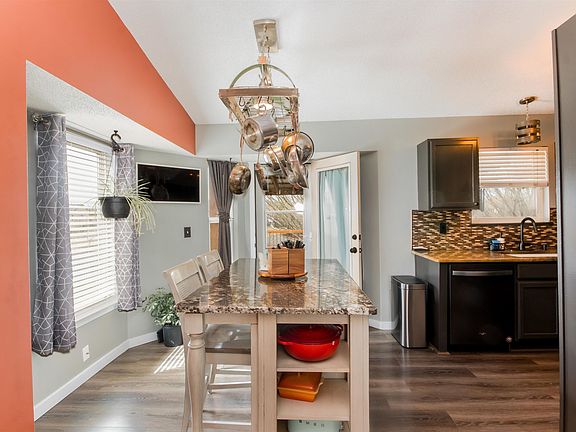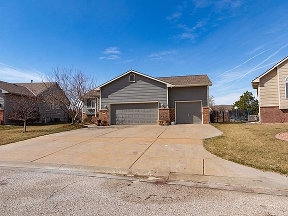 Gorgeous lakefront home in a highly-desirable West Wichita community! Don’t miss out on this 2002-built single family home with 4 beds, 3 baths, and 3-car garage on a 0.21 acre lot with lake access. Almost all of this spacious 2,082 sq ft home has been thoughtfully remodeled with modern touches that you will fall head over heels for! Walking into the home from the cozy front porch, you will be immediately welcomed by vaulted ceilings and beautiful esthetics. The entrance area welcomes you into the open-concept living space that will flow into the kitchen and dining area. The U-shaped kitchen boasts elegance with granite countertops, freshly painted cabinets, new backsplash and stainless steel appliances along with LVP water and warp proof flooring. The dining area provides a granite top island that’s sure to impress and leads to the newly-built elevated covered deck with expansive views of the landscaped backyard and lake. You will find three bedrooms on the main level with a full hall bath – also remodeled! The master bedroom has everything you need with double closets and an ensuite bath. The finished basement creates a VIBE with plush, thick carpet in the family room, a beautifully ornate custom-made wet bar, and a hidden bonus room currently being used as an office. The large fourth bedroom with a walk in closet, third full bath and laundry/storage room complete this space. The backyard of this home is the real showstopper though! This can’t be simply called a backyard, rather an oasis! Walking down from the covered deck, you will find the large patio to host your guests and the outdoor kitchen area that comes with not 1, but 3 built-in grills that will stay with the home! The yard is secured by a wrought-iron fence with gated access to the lake for fishing. Imagine hosting your guests in this beautifully-landscaped and unique space, looking out onto the water – what more could you ask for? Let’s not forget about the brand new concrete fire-pit area! Other recent home upgrades include new flooring throughout the home, new beadboard in the entrance area, a fully-remodeled kitchen and baths, and newer interior paint. Live in this dream home and have your kids attend the top-performing Goddard schools. Take a quick walk to nearby commercial and retail establishments. Kellogg is right outside the community and just a stone’s throw away from the airport. Come and see this listing before it’s too late! Call us to schedule an exclusive showing for you today.