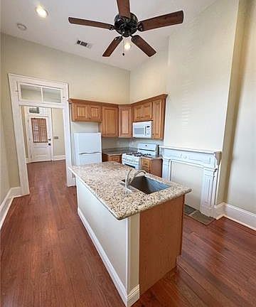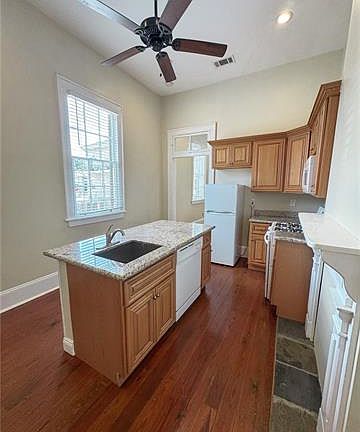 Right side of cute, historic double with 2 beds/1 bath. Shotgun layout, with living and kitchen in the front and bedrooms in the back. High ceilings and great natural light. Central air/heat. All appliances in Kitchen including a dishwasher and gas stove. Washer & Dryer in bathroom. Fenced backyard and storage shed. Owner MIGHT consider SMALL pets, on case by case basis. Tenant responsible for utilities and lawncare. Available immediately! *This property does not accept housing vouchers*