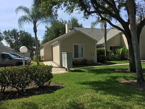This is an upgraded, beautifully furnished 2 bedroom 2 bath ,End unit villa type condo. ,one level, feels like home with no neighbors above you ,concrete block construction makes it virtually soundproof. 24 inch neutral tile laid on the diagonal ,with carpeted bedrooms with walk in closets .Open floor plan. kitchen totally redone with granite countertops and wood cabinets. High capacity a/c 5 yrs old ,water heater 2 yrs old. All appliances 5 years or less. Bathrooms redone with new cabinets and granite top in guest bathroom and marble counter in master bathroom. Ceiling fans in all rooms. Two screened lanais. Convenient parking at your door . Entire complex just painted and new parking lots to be installed this summer.Plenty of privacy in this quiet low density community. Community pool with new estate fencing bordering nature.