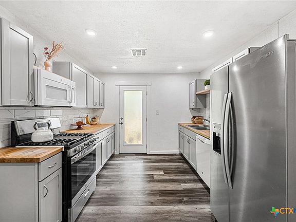 This adorable 2 bed, 1 bath home features an inviting open floor plan and a beautifully updated kitchen complete with a gas range and butcher block countertops—perfect for home chefs. Both bedrooms offer generous space and natural light. Step out back to enjoy a large yard with plenty of room to roam, garden, or entertain. The utility room is conveniently tucked away in a closet off the back porch for easy access without sacrificing indoor space