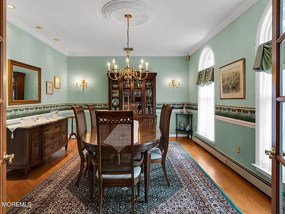 A Shadowbrook Drive address is one of the most sought-after in this highly exclusive Wall Township estate neighborhood, where many await the opportunity to craft their dream home. Situated on a lush, beautifully landscaped corner lot spanning 1.3 acres, this stately center hall Colonial encompasses just under 6,000 square feet of interior living space. Custom built with comfort, space, and elegance in mind, this expansive home offers 5 large bedrooms, 4 full bathrooms, and abundant storage throughout. A sweeping staircase in a two story foyer with French doors flanking either side, leads to the formal living and dining room spaces. Cathedral ceilings adorn the family room with a large wood burning fireplace, wet bar and built-ins. In addition a bright sunroom connects this area to the to the outdoor deck overlooking the yard and pool. The eat-in kitchen with large center island, subzero refrigerator, subzero freezer, and dinette area offer plenty of space for cooking and hosting. The thoughtful layout includes a first floor office, full bathroom, and full size laundry room. Throughout the home, you'll find custom hardwood floors, solid six-panel doors, Andersen windows, 7-zone heating, and 3-zone central air for year-round comfort. The spacious attached 3-car garage provides convenient access to a full basement, offering even more storage and entertaining options. With two staircases accessing the second floor you will discover an upper-level primary suite remarkable in size. Outfitted with a full bath, a walk-in cedar closet, as well as a room of closets, with the option to convert extra space into additional rooms. As a bonus, there is a second-floor recreation room that can easily be used as a bedroom or a space to relax and entertain. Do not miss the walk-up third-floor attic, already sheet rocked and air conditioned, ready for finishing touches. Step outside to your own private retreat. The park-like setting is ideal for entertaining, featuring a 20' x 40' in-ground swimming pool, a pool house complete with a bathroom, and plenty of room to relax and play. Ideally located in a top-rated school district. Enjoy easy access to both the Parkway and nearby train station, making commuting or traveling to NYC a breeze. Just a short drive away, you'll find charming shops and vibrant downtown areas of both Manasquan and Spring Lake. And for beach lovers, the Atlantic coast is only a mile and a half away, providing the perfect balance of serene suburban living with close proximity to the shore. For outdoor enthusiasts, the bike path runs right through the township, providing easy access for biking or walking through scenic nature trails. A must-see property that perfectly blends comfort, functionality, and timeless style.