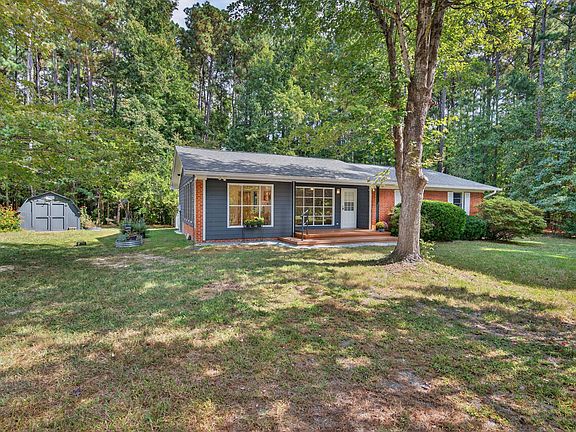 Welcome to your slice of country paradise minutes to downtown Carrboro and UNC. This classic 3/2 ranch home offers timeless charm with modern updates. Find yourself steeped in comfortable living with room to roam along the 10.39 private acres. Step inside to find a warm and inviting layout featuring a spacious family room with cathedral ceilings and rustic beams. The bright eat-in kitchen features a custom kitchen island with leathered granite counters, new stainless-steel stove, undermount cabinet lighting and double French doors overlooking the expansive cable railed deck. The cozy west facing living room overlooks a large covered front porch where you can sink into your rocking chairs at sunset and count your lucky stars. Enjoy high end updates like sealed crawlspace, fiber cement siding, Rinnai tankless water heater, 5 panel solid core interior doors, custom tiled bathrooms, and designer switch cover plates from Van Dykes Restorers. Outside the possibilities are endless with stunning walking trails, an 11x24 wired workshop, fenced rear yard and additional storage shed! No HOA and low county taxes! Located just minutes from UNC campus and eclectic downtown Carrboro, this property offers the best of both worlds: peaceful country living with dynamic urban conveniences at your fingertips.