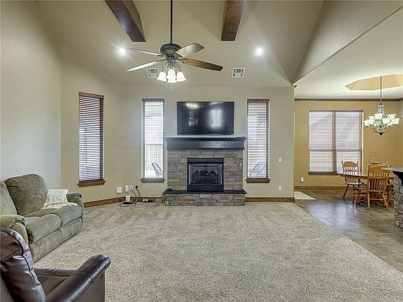 Welcome to Prairie West! This beautiful home is close to the golf course, park and walking trails! The home offers an open floor plan with large back yard is the perfect place to call home! This home has 3 bedrooms, 2 baths, office, large laundry room, and extra storage! Beautiful wood beam feature in the living room, with large windows to let all the natural light in. Three car garage, with storm shelter, and extra storage. Nice covered patio overlooking the large backyard for friends and family to enjoy! Schedule your showing today, this home will go fast!