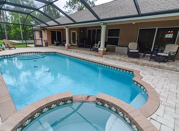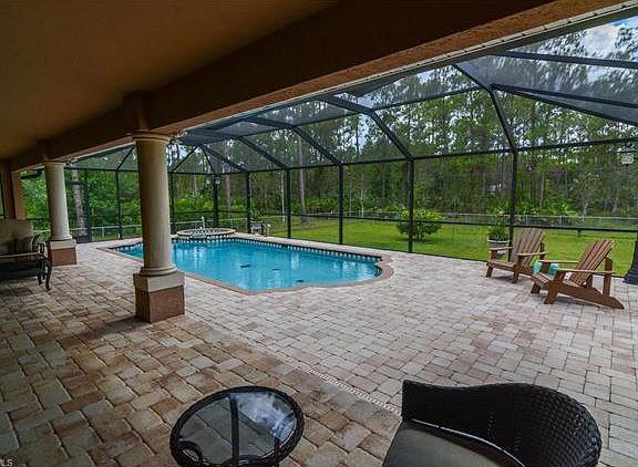 Country estate living at its finest. This quality constructed home has it all! A beautifully designed pool and spa surrounded by paver pool deck and large under truss lanai. Kitchen features Stainless steel appliances, Granite counters, custom tiled back splash with LED lighting and beautiful hardwood cabinetry. Features a breakfast nook as well as formal dining room. This home was designed with neutral colors, tile on the diagonal, custom trim and upgraded molding. Two Master bedroom suites featuring a custom shower with multiple shower heads, Spa Bath, dual sinks, bidet and climate control walk-in closets. Large laundry room with plenty of cabinets and utility sink. Intercom system with speakers thru out the home. Screened Lanai for guests to enjoy the pool and fenced back yard. The home in adorned with features that set it apart - columns, archways, vaulted and tray ceilings, as well as security/surveillance system, custom exterior LED lighting and extended paver driveway. This home and property are pristine.