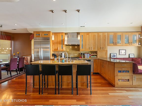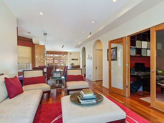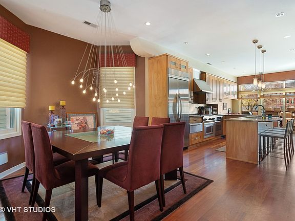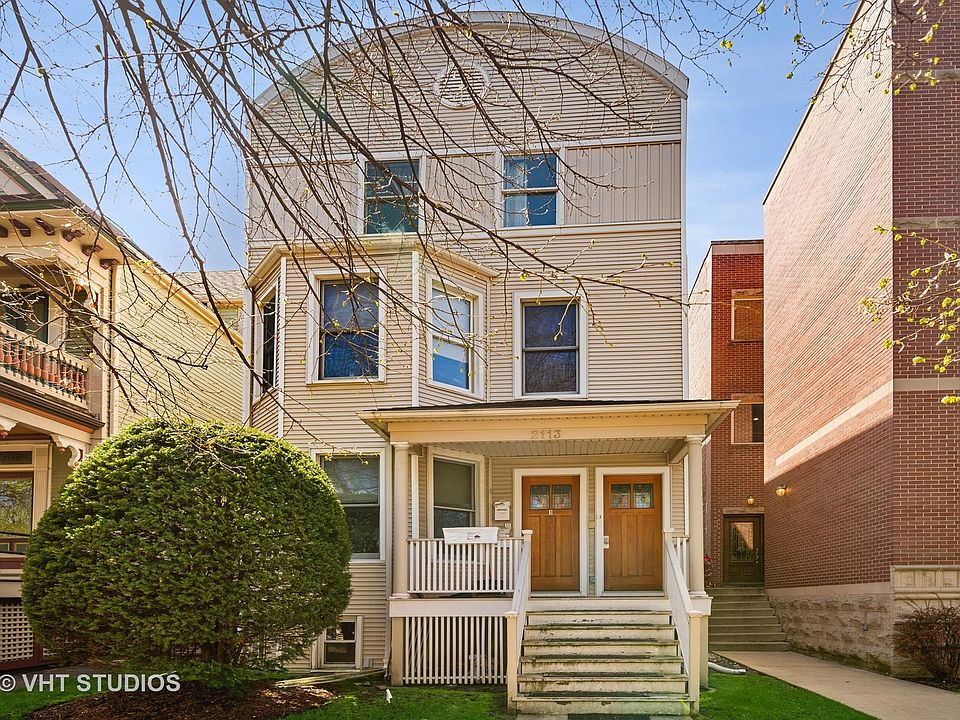 View the 3D walk through tour. Stunning single-family home quality duplex up in wide Roscoe Village 2 unit rehabbed building on wide lot. This was the owner's unit designed for her with high-end level of craftsmanship and finishes that can't be found elsewhere. A private entry leads into this upper level home on the top two floors of a two unit building. On the main level, you will be amazed at the open layout with a front living room, separate dining area, back family room off the kitchen, a kitchen nook seating area, an incredible chef's kitchen with high-end appliances and amazing amounts of cabinet space, as well as an outdoor deck. There is a front office off the living room and a powder room on this level as well. Upstairs will be three large bedrooms. The master bedroom suite includes a master bathroom with double-bowl vanity and whirlpool tub along with a large amount of closet space and private deck area. Both of the other two bedrooms are large and share a hall bathroom with natural stone finishes. Side by side washer and dryer on the bedroom level for convenience. The entire home runs off an automated lighting system and offers your own furnace and central air. Brazilian cherry floors throughout all of the home except for the master bedroom. Garage parking is an additional $125.00. From this location, you are steps to the award winning Audubon School, about 4 blocks from the Brown Line Addison El stop, and a short stroll to the heart of Roscoe Village as well as Wrigley Field. Available August 1st, 2020. Broker owned, but not owned by listing agent.