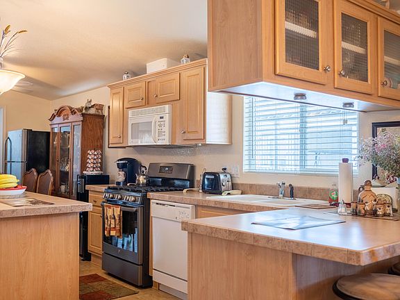 Beautiful and Ready to Move In! Located in very quite Mobile Home Park. Excellent for a Big Family, 1,493 Sq Ft and Has 4 Bedrooms, 2 Bathrooms, Spacious Kitchen With an Island, and Built In Microwave, Large Living Room with New Laminated Flooring, Central Heating and Central AC, Laundry Room with Cabinets, Dinning Area, 2 Storage Sheds in the Back. Also the Park Has Swimming Pool, Recreation Area, and More...