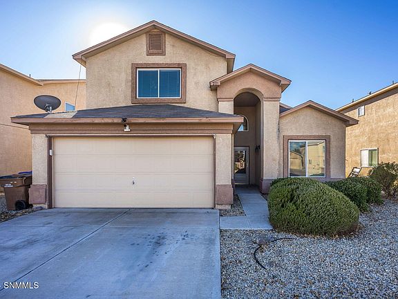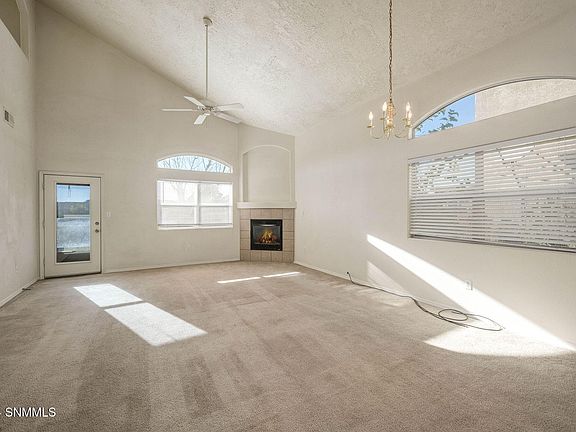 Two-story home nestled in the desirable Alameda area of Las Cruces. Offering a spacious and inviting atmosphere, this property boasts a large, light-filled living area on the main floor, complete with a charming fireplace to gather around. High vaulted ceilings create an airy, open feel throughout the home, enhancing the sense of space and elegance.The country-style kitchen is designed for both function and style, featuring a convenient pass-through to the adjoining dining area, perfect for hosting meals with family and friends. Upstairs, you'll find a generous family room, providing a versatile space for relaxation, entertainment, or creating your ideal living environment.Step outside to a tiered backyard, where a brick patio offers the perfect spot for enjoying the serene, open views with no buildings to the rear. Modern comforts include refrigerated air conditioning to keep you cool year-round.