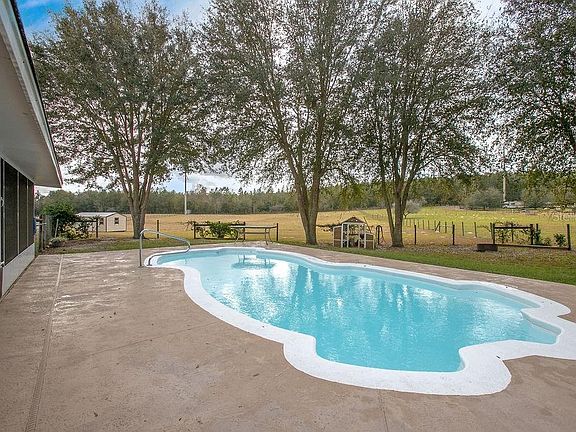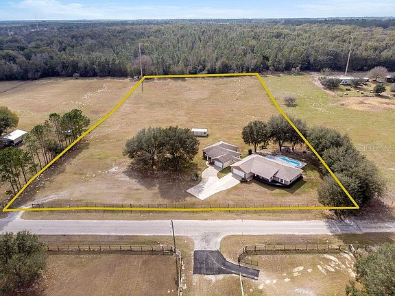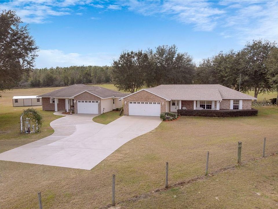 This fully fenced 5-acre parcel with TWO gorgeous homes and a swimming pool on a quiet paved lane is zoned for horses and is surely country living, yet is just minutes from Mount Dora, Eustis, and the new Wekiva Parkway, making the Orlando commute a breeze! One home is a beautifully landscaped 3/2/2 with 1,600 square feet with an inground pool and a newer roof and the other is a 1/1/1 with 912 square feet that was built in 2014. The larger home features a split floor plan, and the cathedral ceilings provide a spacious feel to the main living area that sits adjacent to the dining area and French Doors that lead to the 34 X 10 rear screened porch and pool area, which is perfect for watching sunsets over the large grassy pasture. The kitchen is open to the dining room and living area and includes a wonderful view of the rear pasture. The 14 X 13 owner's suite features French Doors that lead to the rear screened porch and the private bath includes a step-in shower and a huge walk-in closet. The one bedroom-one bath home was built in 2014 and includes a full kitchen, tile throughout, dual-pane windows, the bath includes a wheelchair-accessible step-in shower, and the living room French Doors lead to the screened porch that overlooks the pasture. This home includes a covered breezeway to the main home and is a perfect In-law or family situation or potentially even as an income producing property. The 24 X 12 storage shed stays with your new home. All appliances, including washer and dryer in each home convey with your new home. Ask your Realtor® for the link to the 360-degree tour. All measurements are approximate and should be independently verified.